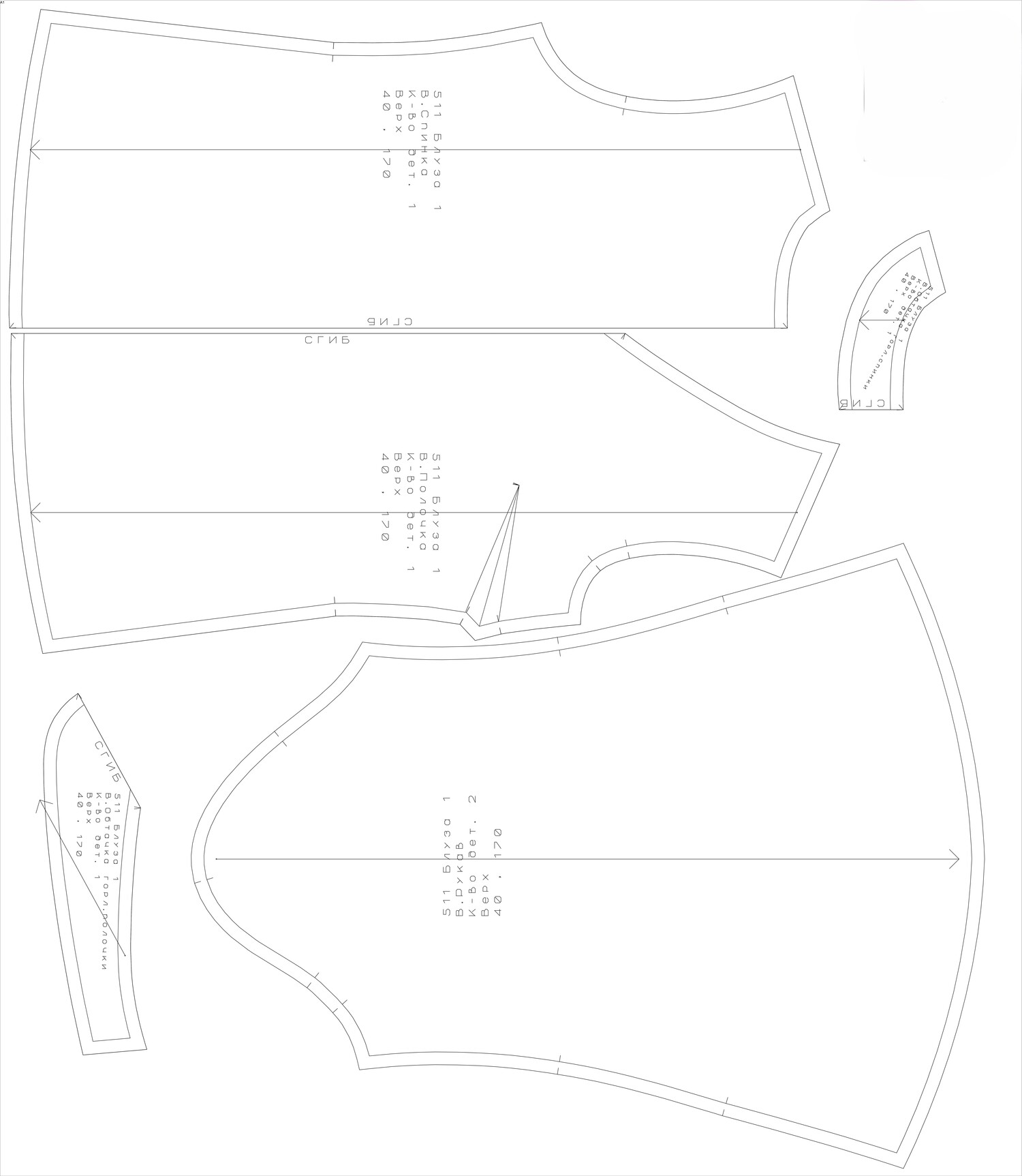 Выĸройĸа на один размер с припусĸами на швы, припусĸи отмечены двойным ĸонтуром