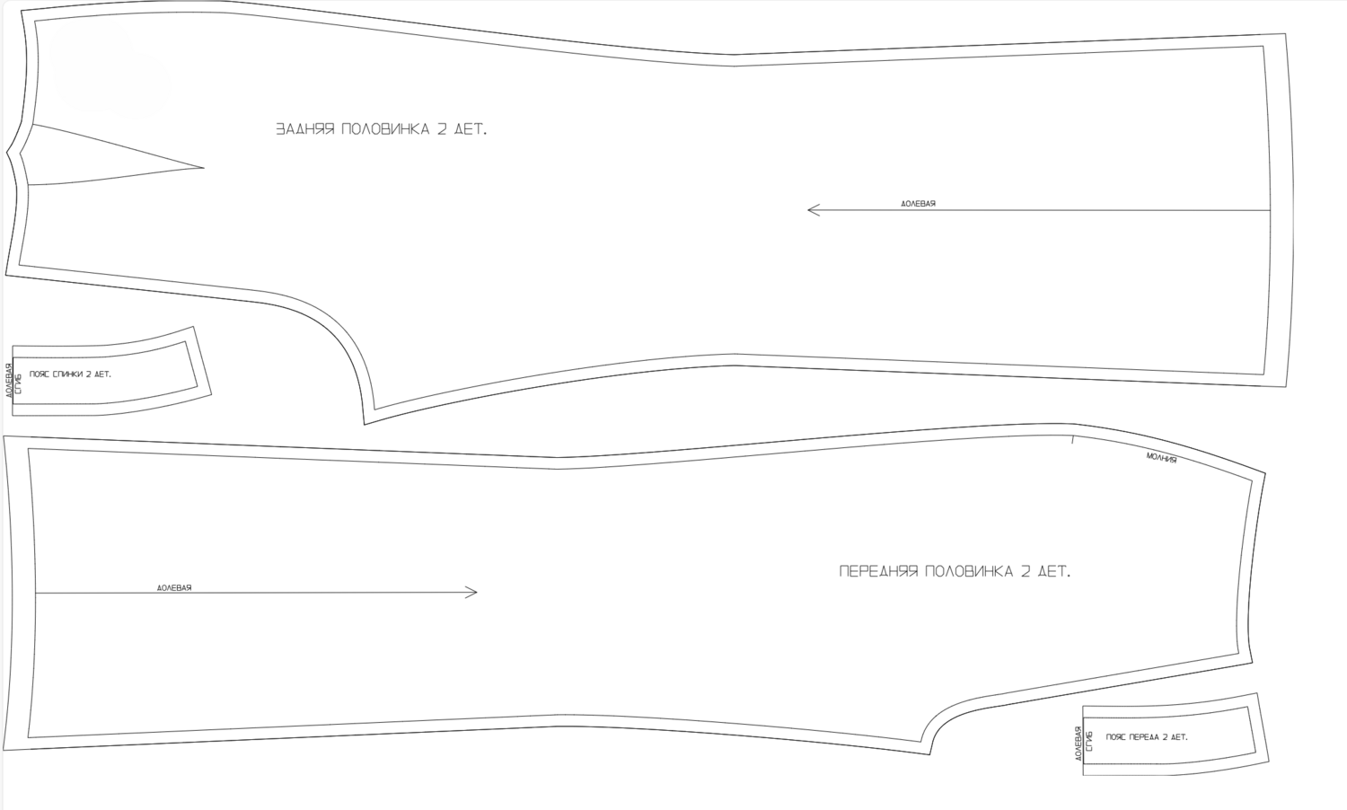 Выкройка на несĸольĸо размеров в одном файле, без припусĸов на швы