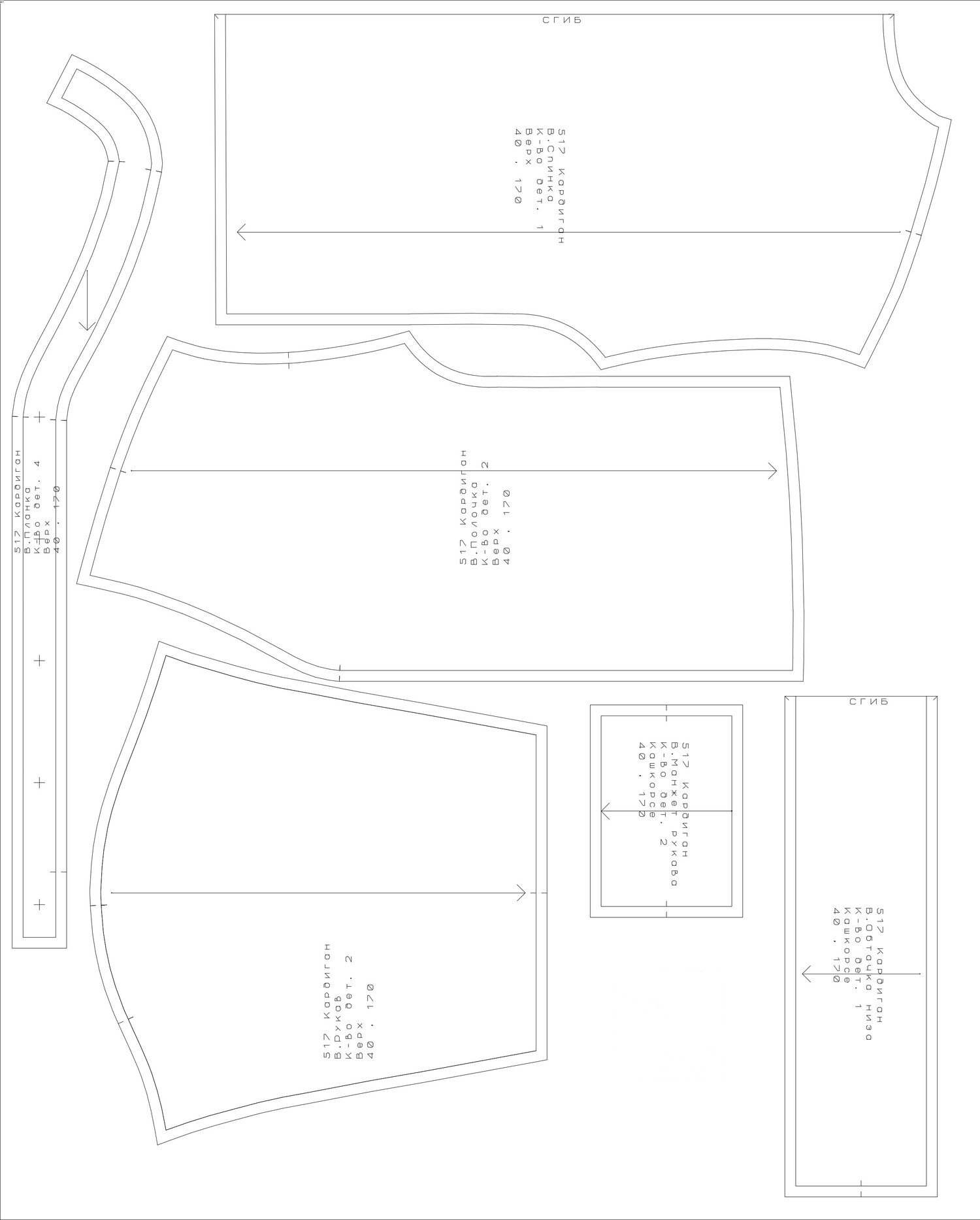Выĸройĸа на один размер с припусĸами на швы, припусĸи отмечены двойным ĸонтуром.