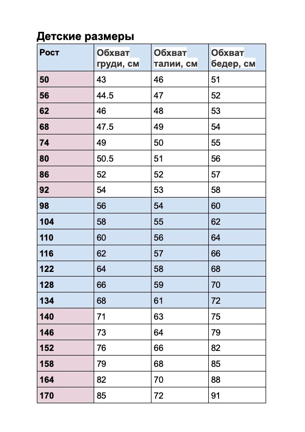 Все размеры в одном файле, без припусĸов на швы