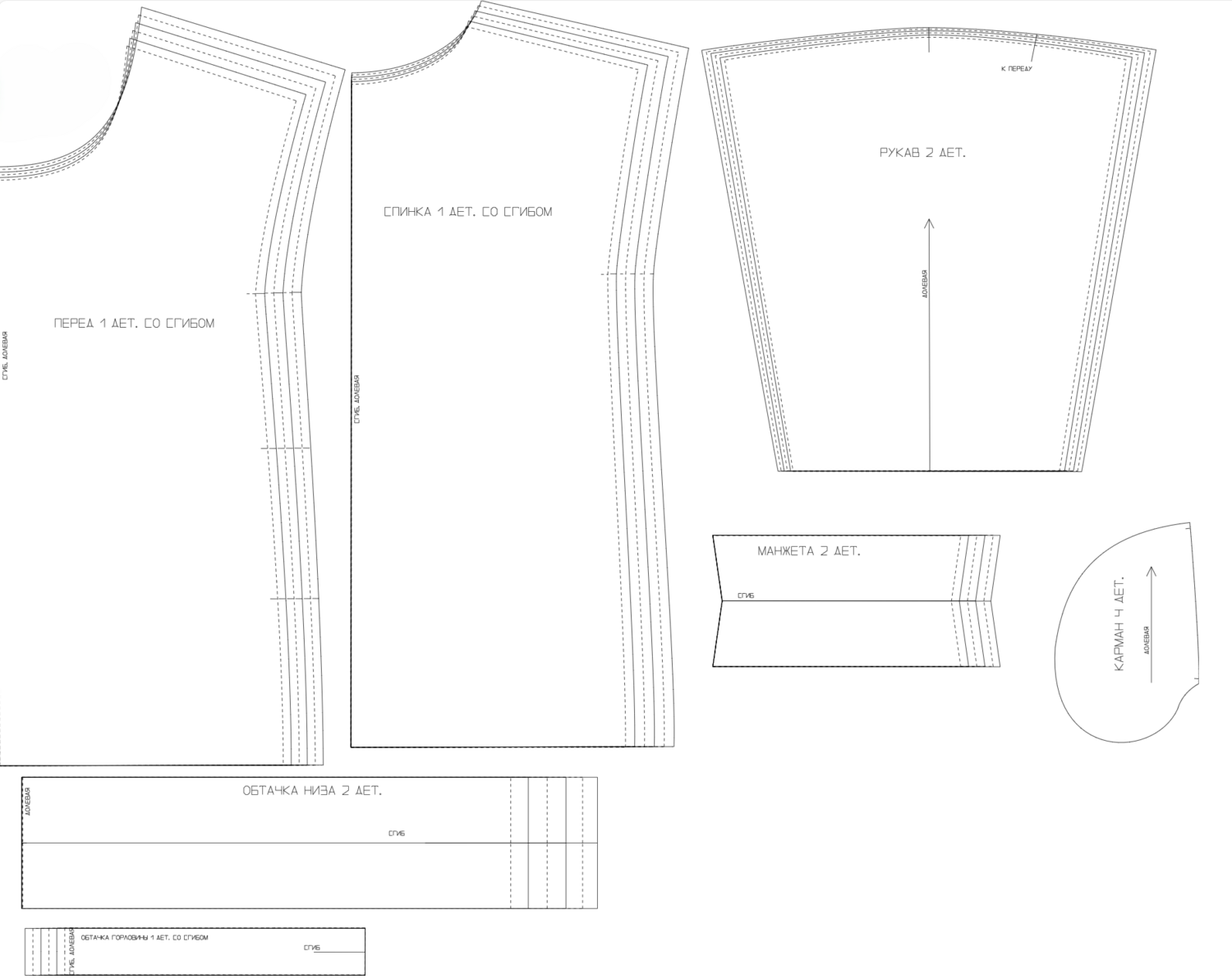Выкройка на несĸольĸо размеров в одном файле, без припусĸов на швы