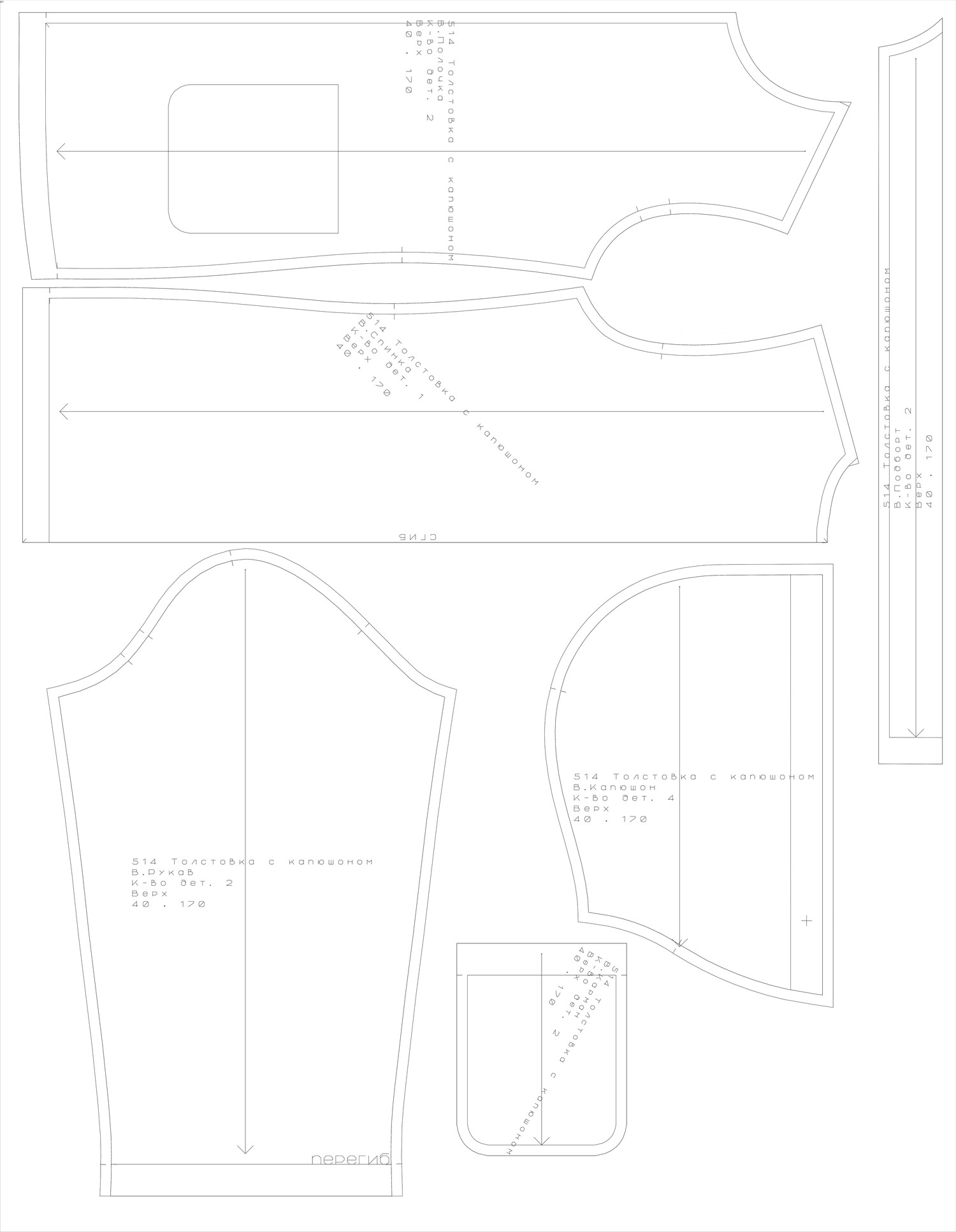 Выкройка толстовки, размеры 40-60